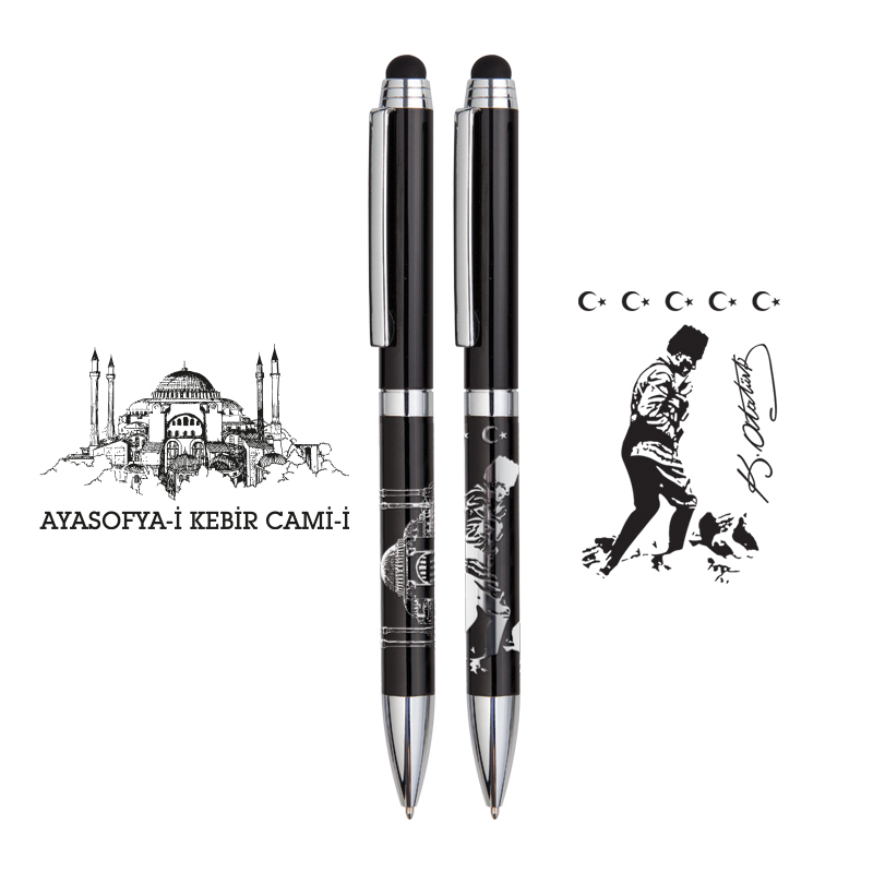 1107-T Atatürk Kabartma Figürlü Metal Tükenmez Kalem