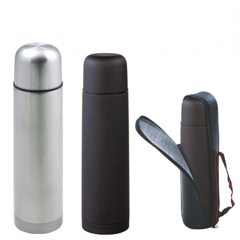 750 ml. Metal Termos Paslanmaz Çelik Kaymaz Taban Siyah Deri Çantalı