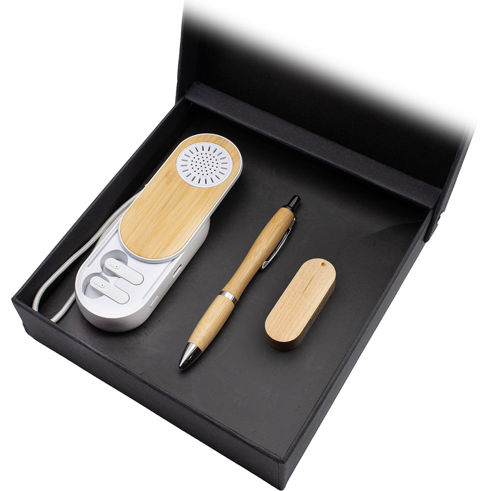 1474 Bambu tükenmez kalem 7554 Hoparlörlü bluetooth kulaklık 7212 Bambu 16gb usb bellek 4602 Set kutusu