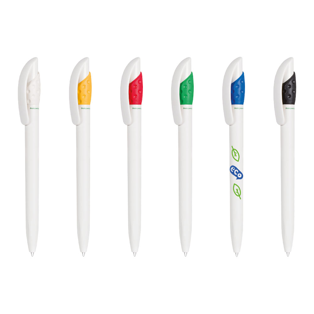 Doğa Dostu BİOÇÖZÜNÜR Hammadde Boyut: 10 × 144 mm Mekanizma: Basmalı Paketleme: 35/1400 Refil: İnce X-20 Mürekkep rengi: Standart mavi / Talep üzerine siyah