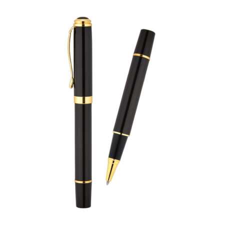 1111-RT Siyah-Siyah Klips Metal Roller & Tükenmez Kalem Seti